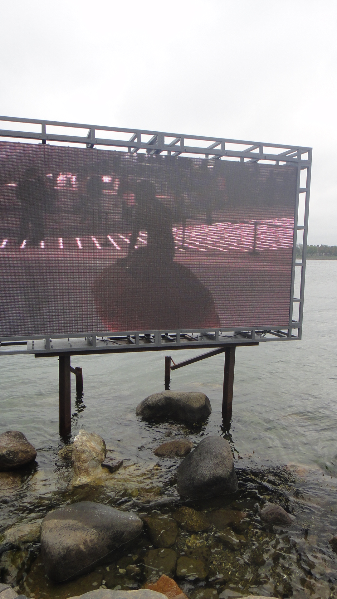 変わりに巨大電子モニターが設置され、現在の万博での像を写してました(一枚目の写真参照)。