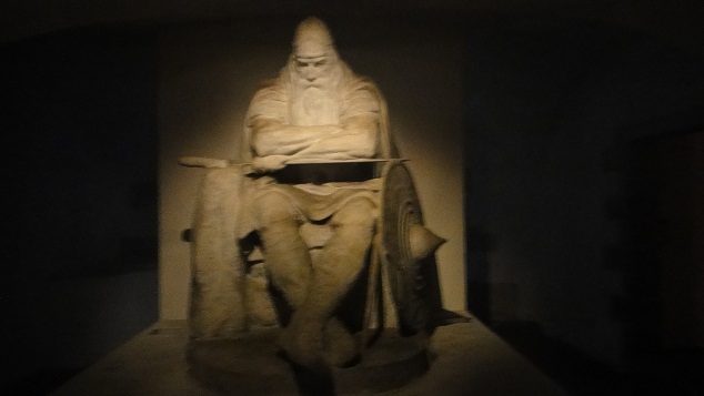 とりあえずどこ進んでるんだかわからず、完璧に迷ってしまった僕ですが、どうやら最深部まで進めたようで、奥には薄暗い灯りの元、デンマークの伝説の英雄(名前失念)の像が飾られていました。